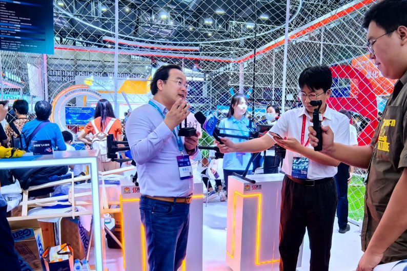 展會(huì)現(xiàn)場(chǎng),設(shè)置“智能體智闖旋關(guān)”與“智能體智探幻陣”游戲,讓觀眾體驗(yàn)“具身智能、空間智能、自主決策”及“空地協(xié)同多智能體聯(lián)動(dòng)”全自主無(wú)人系統(tǒng)的強(qiáng)大能力。在“智能體智闖旋關(guān)”游戲環(huán)節(jié),4位持有民航局頒發(fā)的小型多旋翼無(wú)人機(jī)超視距駕駛員證書的專業(yè)選手與“神思智飛”展開精彩對(duì)決。最終“神思智飛”順利完成比賽,專業(yè)選手均未能完成挑戰(zhàn)任務(wù),在這場(chǎng)人工操控與AI技術(shù)的對(duì)弈中,“神思智飛”大獲全勝。