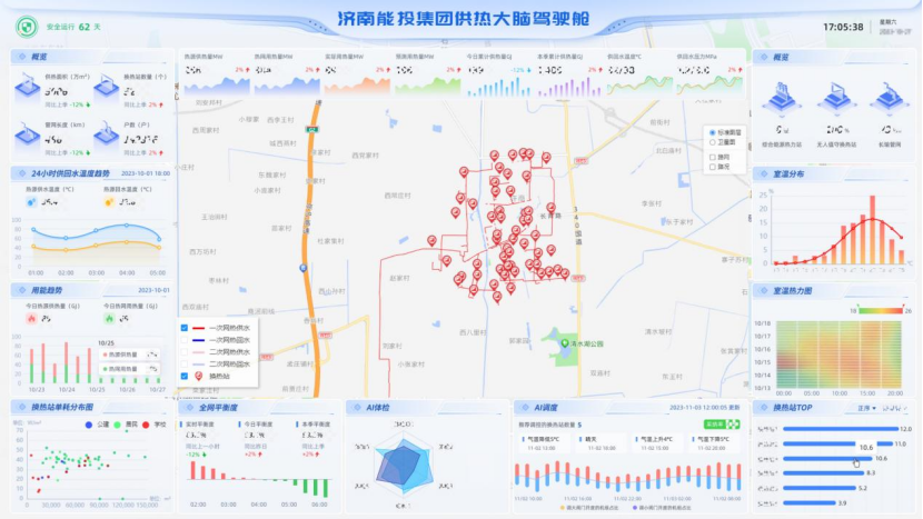 構建“源、網(wǎng)、站、戶”全鏈路數(shù)字孿生模型,打造具備自我學習、自主決策的智慧中樞。平臺憑借強大的負荷實時預測與AI平衡調(diào)控算法,規(guī)?;⒎€(wěn)定地接管了海量換熱站的底層控制權,在保障海量用戶平穩(wěn)用熱的基礎上,成功樹立了區(qū)域級智慧低碳供熱新標桿。