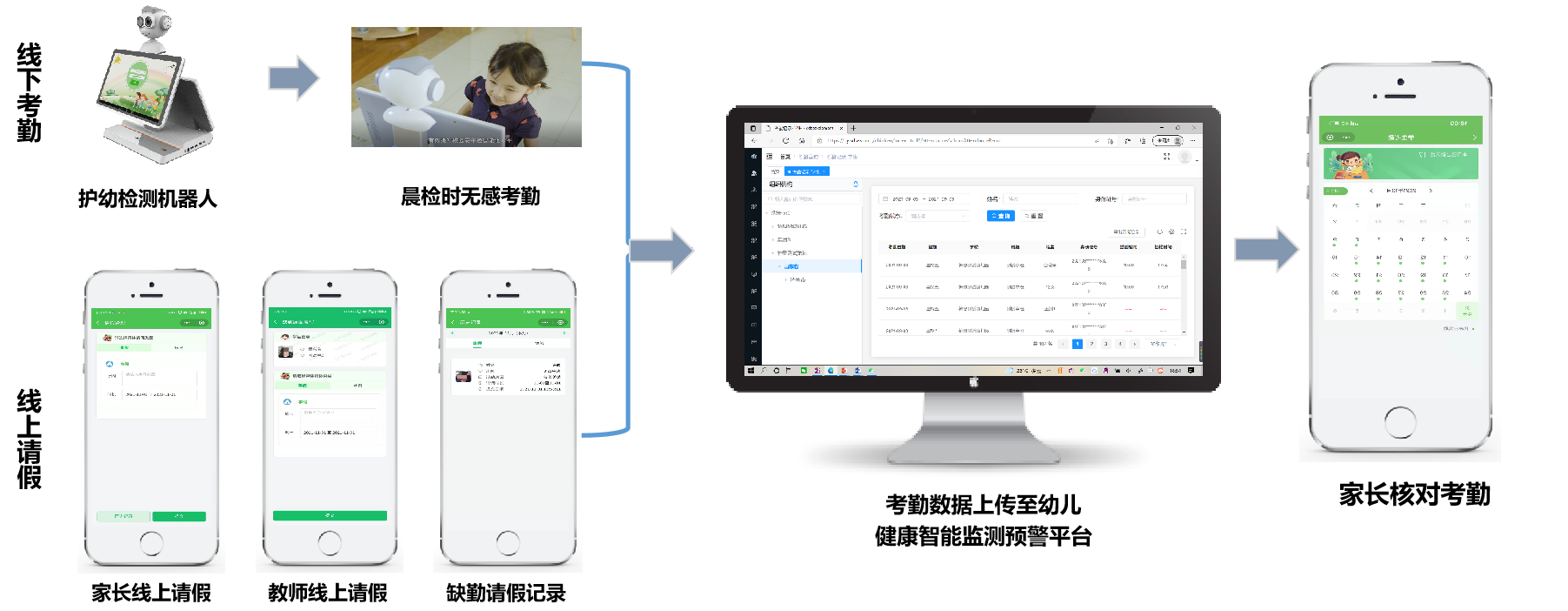 依托雙中臺(tái)先進(jìn)架構(gòu),以幼兒園晨午檢為切入點(diǎn),融合護(hù)幼檢測(cè)機(jī)器人、幼兒健康智能監(jiān)測(cè)預(yù)警平臺(tái)與AIU視頻監(jiān)控模組組成一體化解決方案,具備智能晨檢、業(yè)務(wù)賦能、安全保障等功能,守護(hù)幼兒健康。